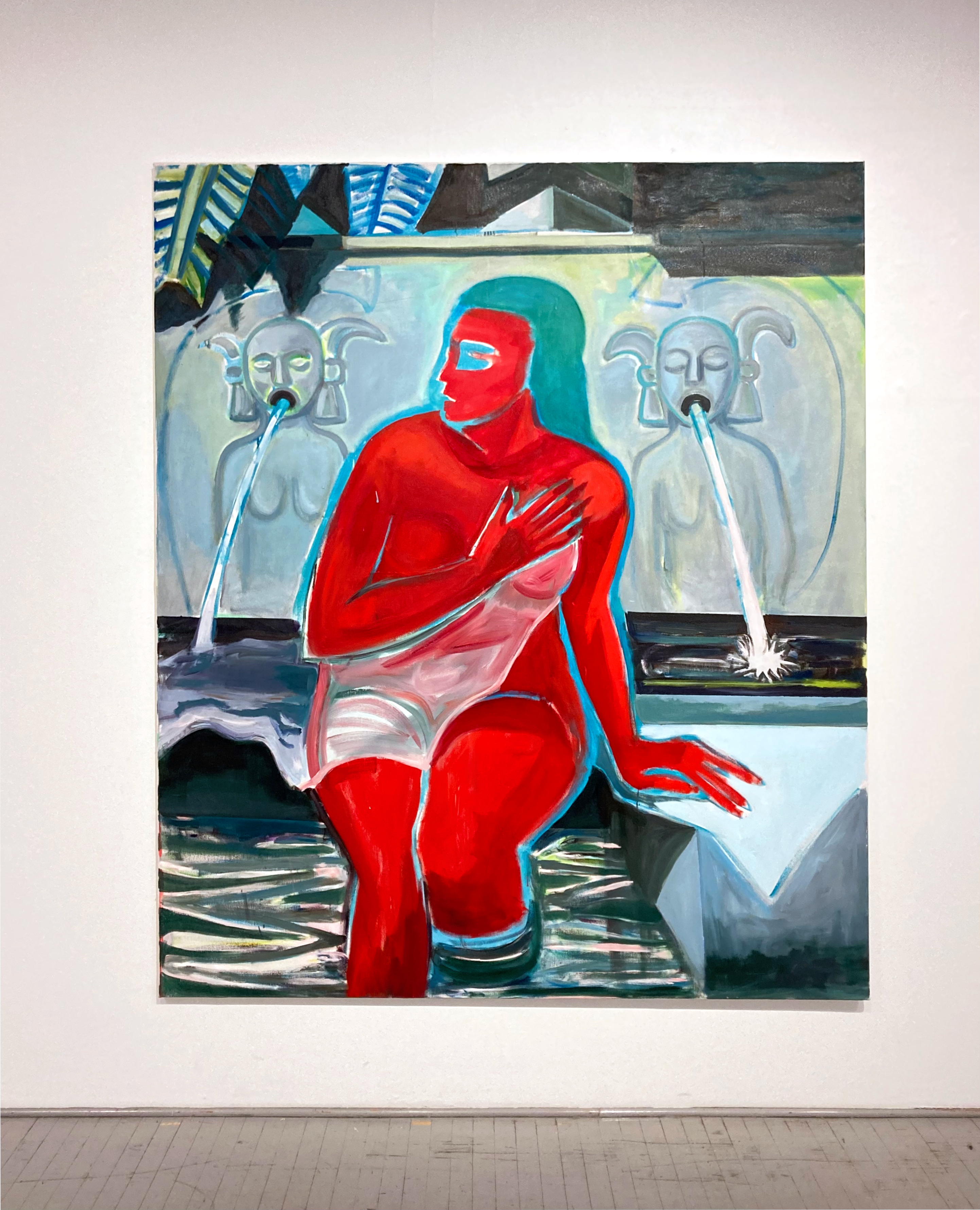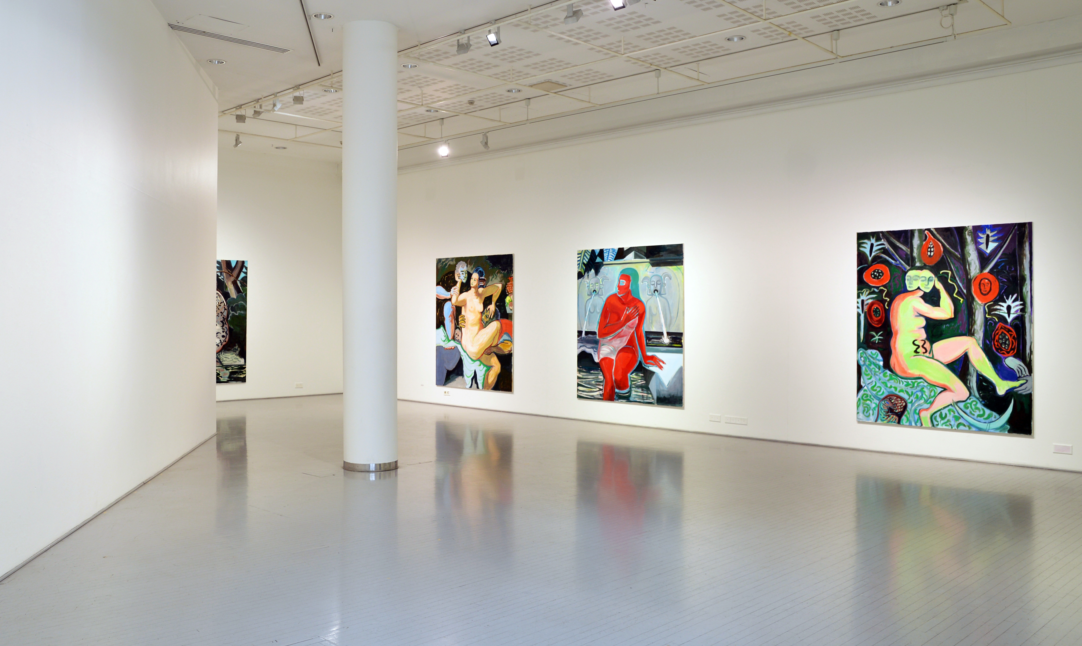 The starting point of the work is the story of Susanna, a young woman who became a target of harassment while bathing in her private garden. The paintings contain references to several different versions of this story, which has been depicted throughout art history. The story serves as a mirror for emotions such as power, anger, fear, euphoria, and vulnerability.