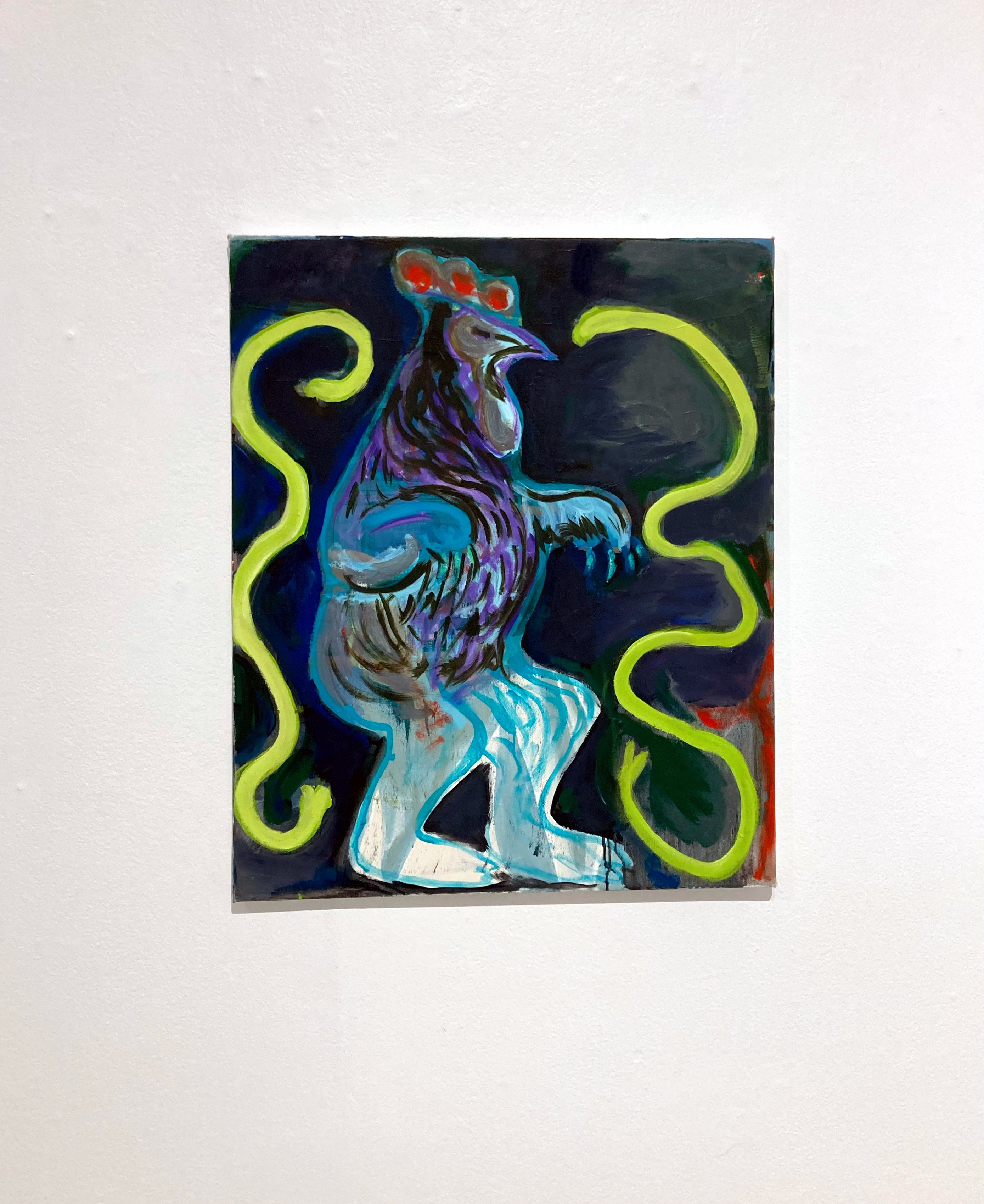 I play with exaggerated ideas of femininity—with seemingly straightforward references to the personal, the private, and the bodily, which appear to close so tightly around me that I can no longer separate myself from my work. I have been working on these paintings for the past three years. Over this long process, the works have created their own enclosed reality outside of myself; they have materialized through my feelings, body, and experiences, forming their own ecosystem. Over time, they have become strangers. I like to think that the garden has closed in—the branches have grown, obscuring the view—and now I can only peek at them through a hole in the hedge.