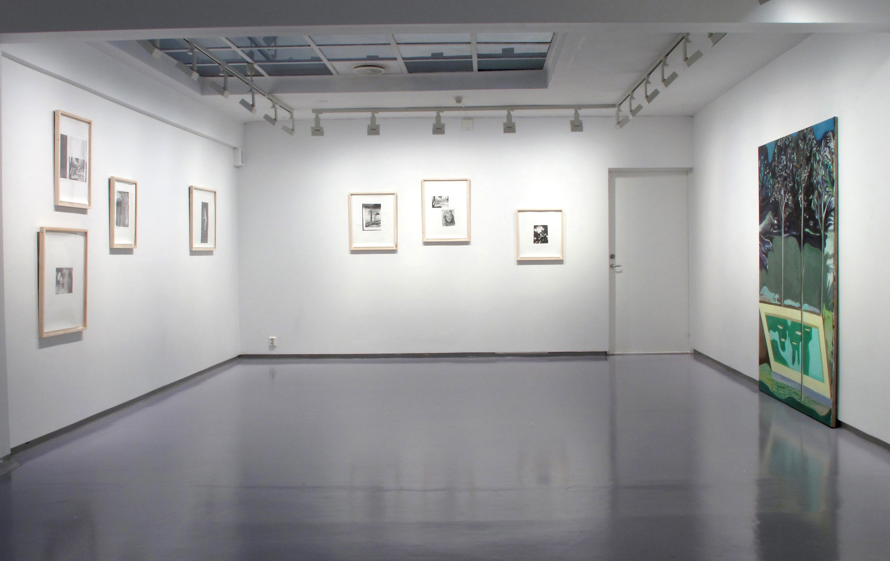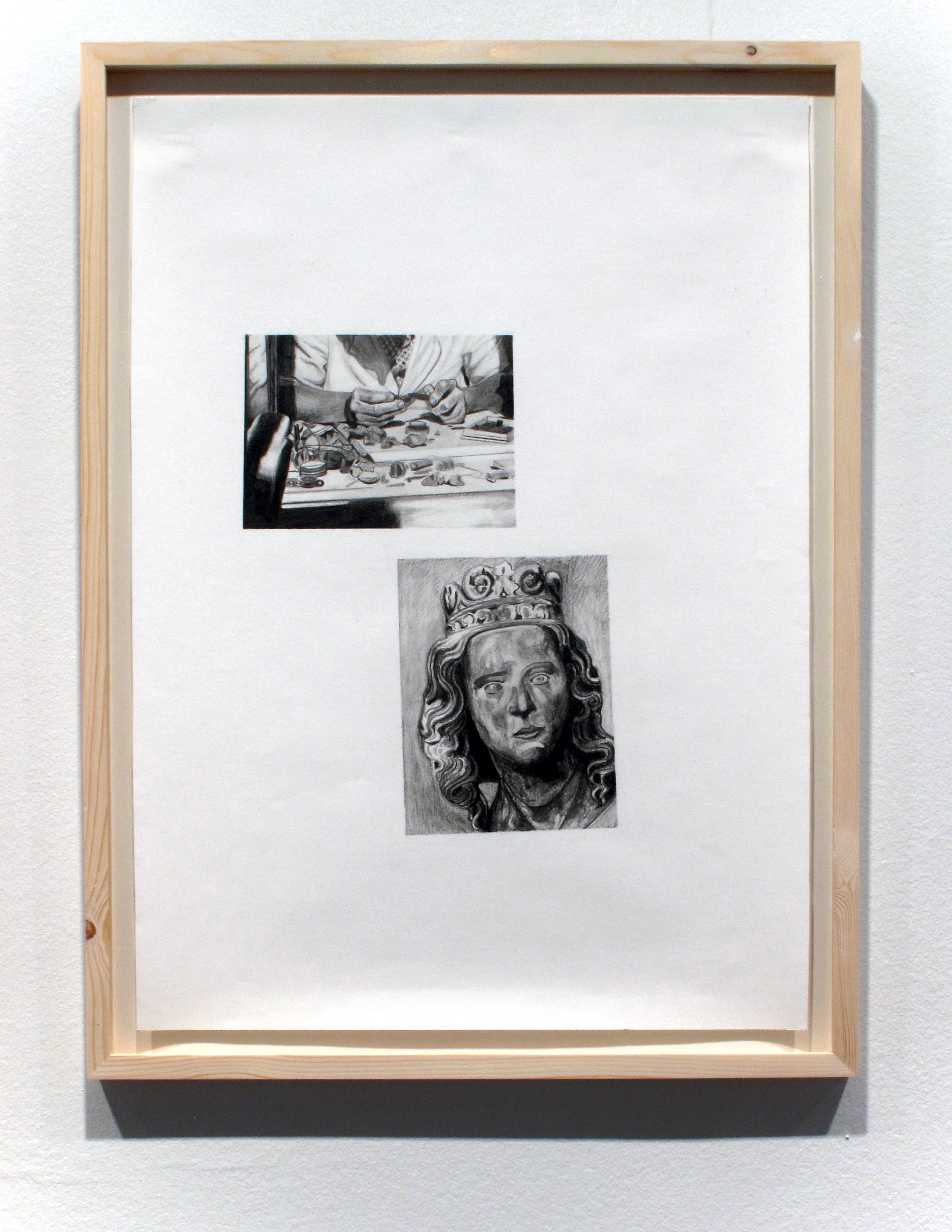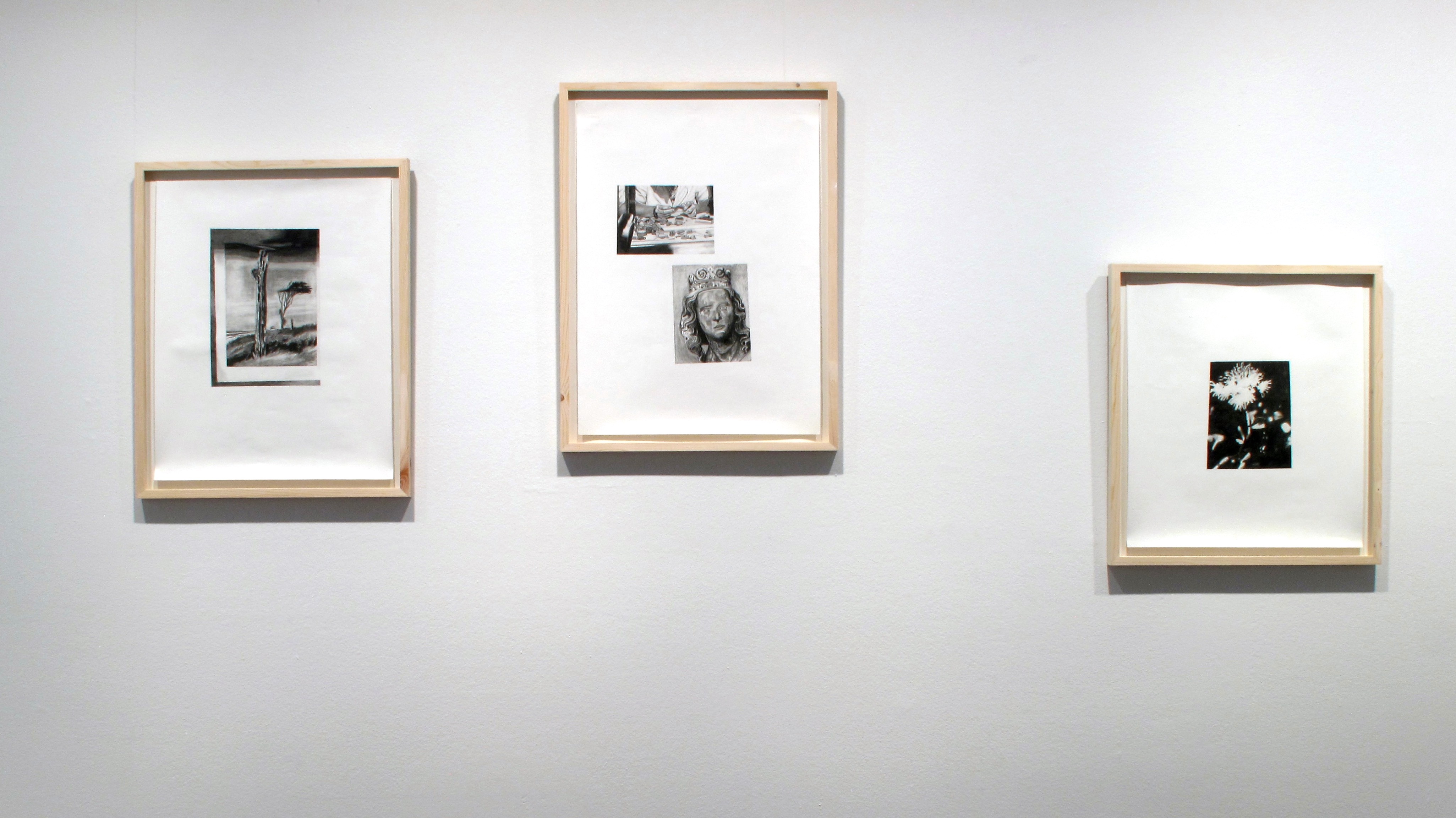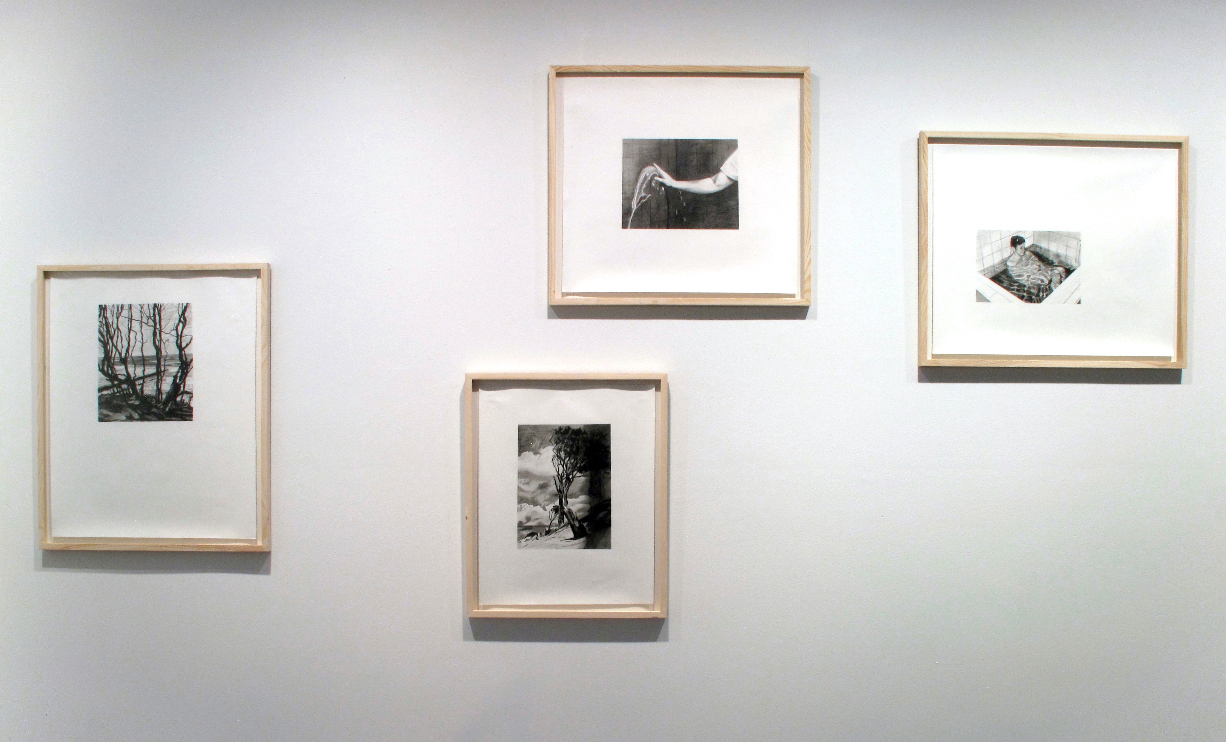 Installation with graphite drawings on paper, frames, acrylic and oil paintings on linen.